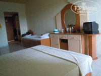 В номере присутствует холодильник, телевизор, кондиционер, фен. Сейфа нет. Он на ресепшн за 1 евро/сутки.