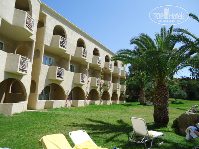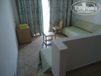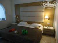 Заселили минут за 10, номер Family Room (4 кровати, телевизор холодильник, гардероб, комод и две тумбочки, как говорится ничего лишнего). Номер понравился. Вид с балкона на детский бассейн и море тоже видно. Жили на втором этаже. Территория большая зеленая, пальмы, цветы, бассейны "понатыканы")) На самом деле понравилось расположение бассейнов, есть для самых маленьких, есть для детей постарше, есть совсем глубокие. Расположение номера очень удачное (мое субъективное мнение), 5 метров до бассейна, где водные горки, новые хорошо смонтированные, никто ничего не ободрал)) Утром после завтрака, удобно проводить там время, бассейны прогреваются быстрее чем море, лежаки свободные, полотенца брали за депозит, который нам спокойно вернули при выезде (10 евро за полотенце). Ну либо привозить свои, либо просто купить в супермаркете.