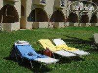 С другой стороны корпуса лягушатник, там тоже можно спокойно провести время до обеда, шезлонги стоят прямо на траве или под тенью пальм.
