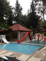 Отличная зеленая территория, парк, который мой сын называл «страшный лес». 4 бассейна: маленький около лобби (на лежаках ловил Wi Fi), для вальяжного отдыха; большой, где проходила вся анимация, там же бар и стол закусок, порадовал айран (кефир); бассейн с горками (3 шт.); детский с маленькими горками. Мини клуб и детская площадка удобно расположены рядом с детским бассейном и туалетом. Как говорит моя подруга: «Всё для людей». Уборка каждый день. Территория смежная с отелем «PR Festival», там тоже можно гулять. Охрана круглосуточная – мышь не проскочит, узнала об этом, когда сына 20 минут искала.