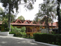 Территория отеля и расположение - его главные плюсы. Отель расположен в сосновом лесу между Ичмелером и Мармарисом. Вдоль всего побережья идет променад, по которому из отеля можно пешком дойти до Ичмелера, да и до Мармариса при желании, но очень долго идти. Лучше до Мармариса доехать на долмуше. Также по променаду можно кататься на велосипедах. (В отеле аренда велосипеда 20$ сутки, недалеко от отеля можно взять велосипед с почасовой оплатой.) Или просто прогуливаться, что очень приятно. Для покупок и долмуша советую поменять доллары на турецкие лиры, в магазинах все цены в лирах, при оплате долларами - не выгодно.