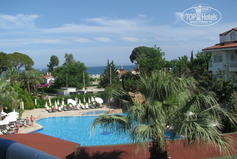 отдыхали с подругой..(питер)притензий , ни к чему ,не имею ,мы из непритезательных туристов, не первый раз в турции .знали, куда едим и за какие деньги ...просто опишу ,как ,все было.. приехали в 5 утра. несмотря на то, что в отеле было много свободных номеров ,персонал ссылаясь на заселение в 14-00, предложил ждать на диване!!! 20$ не помогли ,когда рядом стоял гид из пегаса ,который нас привез( они при гидах деньги не берут и не просят!) но как только он уехал, нам предложили, на выбор 3 номера- наш стандарт по путевке и два номера трипл с видом на сад и на море. торговаться начали со 100 в итоге за 50 взяли с видом на море (303).номера с видом на ресторан и бассейн очень шумные !(для тех кому это важно- музыка, анимация,звон ложек и вилок!) мебель старовата ,зановеска порвана по центру, на балконе жили муравьи, но нас они не трогали, мы, их тоже! холодильник был сломан ,потом поменяли. полотенца и белье явно застираны. бесплатный сейф в номере порадовал. уборка в номере обычная; пылесос +смена полотенец, если кинете их на пол. смену постельного белья не заметили ,ни разу ,за 2 недели... ресторан на открытом воздухе. вокруг столов вьются голодные кошки .один раз одна даже на стол залезла за едой, пока я отошла !так что, кто животных не любит ,вам ,стоит обратить внимание на это! завтрак слабоват. многие ,даже не ходили на него;соевая колбаса, сыр, яйца( все 2 недели были только вареные )творог,мюсли, помидоры, огурцы, картошка масло видела один раз! обед более насыщен ; много сои ,перебивались курицей, рыбой и овощами ,много зелени!дыня,иногда арбуз и апельсины ! ужин,тот же обед, но на открытом огне два повара готовили вкусности :нагетсы ,картофель фри гамбургеры, блинчики ,шашлычки и тд правда за этим выстраивалась очередь.. иногда до 30мин приходилось постоять. ,официанты хватают тарелки со столов не вникая доел ты или нет ... бар -кто едит бухать, вам не сюда !!!!пиво разбавленное,вино порашковое, колы, виски ,рома не было!в пластиковых минзурках дают. избранным- в стекле! чай ,кофе в автомате! контингент отеля -семейные- сибирь и урал, в основном !много детей ,маленьких , орущих на пляже, и в ресторане .территория отеля зеленая. море чистое! пляж галечный!лежаков не много ,надо раньше приходить... хамам в отеле вполне приличный -25 $.экскурсиии брали у гинзы, остались довольны .все предыдущие отзывы совпали, с тем ч,то мы увидели ко всему были готовы, поэтому, довольны отдыхом ,исходя из соотношения цена -качество!
