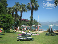 Понравилось, что не было ревущей музыки и навязчивой анимации (Как обычно, если не в твоем отеле, то из соседнего слышно). Вдоль берега спрятаны динамики, из которых раздавались приятные негромкие мелодии и песни типа «bessa me mucho». А вечером в центральной части - живая музыка, англичанка хорошо пела из «Beatlеs», «Queen»… Шоу тоже понравились. Правда, утром мулла будил (иногда слышно из Фетхие) и какой-то баркас тарахтел часов в 5-6.
