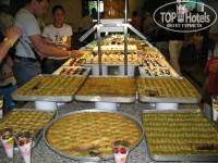 Голодным не останешься точно. Куча сладкого разнообразного. Торты, пирожные, пудинги, пахлава, печенья, варенья, шоколад.