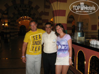 Пиво - неплохое, как наше Клинское примерно. Вино белое - ничего так. Остальное (розовое, красное) - бррр... Но это на любителя... Текила-хорошая. Коктейли - парочку любимых для себя можно выбрать. Соки - апельсиновый, гуава, ананасовый и томатный из пачек. Обслуживание - дискриминация полнейшая. Бармены кланяются, приседают и танцуют вокруг немцев, но, думаю, если одному из них дать пару долларов, вокруг тебя плясать будут тоже. Мы не давали, а значит ходили за напитками сами и наблюдали, как бармены бабочками летали, разве что не наступая на нас, к столам немецких гостей. Смешно, конечно, но за детей было обидно малеха. В баре около второго бассейна (около детской площадки) дети (одни, без нас) ждали порой долго своих положенных и оплаченных несчастных соков, потому что внимания на них не обращали никакого (для барменов очень удобно, когда дети без взрослых). Конечно, они же русские дети... зачем на них внимание обращать... подождут. В лобби-баре бармен европейской внешности (он там один такой) и вовсе не стал мне чай наливать. Подал пакетик, кружку и дотягивайся как хочешь до горячей воды сама... Муж тянулся через стойку к кулеру. Кто там был - поймет, что кулер находится ЗА стойкой бара и что бармен должен чай наливать разумеется сам. Но зачем?.... Я же не шпрехаю... Но это еще и от человеческих качеств зависит. Зато другой (он есть у меня на фото) обслуживал всех одинаково, независимо от происхождения, и делал мне, к примеру, настолько вкусные и полезные чаи, что хочется выразить ему особую благодарность за внимание и благородство. Тому хаму-бармену тоже спасибо. Начинаешь ценить добрых и отзывчивых людей. Они выделяются на его фоне).
