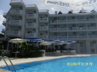 Начну все по-порядку.Отдыхали с мужем и дочкой с 19 по 30 мая 2013 года. Приехали - перед завтраком. Добродушный ЕМРАХ сразу отвел на завтрак. Немного пришлось погулять и в течение 1-1,5 часа нас заселили на второй этаж. Номер был хороший, с рабочим кондиционером и телевизором. Так как были со взрослой дочкой , через два дня можно было переселиться в семейный номер, но мы отказались.Теперь о питании. Если вы хотите мяса, то вам надо ехать не в эту страну. Мясо конечно же было, но не в том количестве, к которому привык наш русский человек.В основном, особенно вначале, была одна соя.Потом жарили на гриле рыбу, креветки, омлет. В принципе, я была с мужем, но ему тоже хватало еды. Кто за чем едет на отдых. Мы лично за морем и солнцем. А еда? Это как приятная добавка к приятному отдыху.Персонал конечно нас вообще заворожил. На рецепшене: Емрах и Хасан. Это просто чудо. Такие приветливые, улыбчивые, добродушные.Слова благодарности хочется сказать абсолютно всем: Мусе, Якубу, Махмуду(бармен).Ребята, вы прелесть.Восхищаться стоит и хамамом. Анжела (моя землячка), Мурат, Якшар (массажист).Если будете в этом отеле, обязательно посетите хамам и возьмите курс массажа, не пожалеете. Я ходила 6 раз. Очень понравилось.Анимация в этом отеле, оставляет желать лучшего. Один аниматор Октай, еще как-тот пытался завести публику.Он молодец. Девченки ( Диана и Марьяна)только уговаривали всех идти в ночной клуб и брали за это деньги.Сидели с отдыхающими за столами , ели , пили с ними. Я считаю это возмутительным. Вдвоем в тремя детьми (столько было в отеле) вечером попрыгают, и вся их работа. С персоналом отеля команде из отдыхающих ( в том числе и моему мужу) довелось дважды поиграть в футбол. Мы воочию увидели, как они играют!!!! И это в 12 часов ночи, после основной работы.Они дважды выиграли. Ребята вы МОЛОДЦЫ!!!! Притом все.