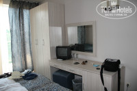 Отель супер, новенький, чистенький, красивый)) сначала смущало одно - непонятный спуск по ступенькам к морю..но всё не так ужасно! пару ступенек и вы уже "на земле") путь к мору нашли идя за туристами по дороге с множеством магазинчиков: духи, мыло, мед, фенички, магнитики и т.д. На пляже зонтики и лежаки платные, но мы лежали на песочке прям у моря, так даже лучше, не жарко. Золотые пески - курорт для развлечения, невозможно соскучиться. Столько кафешек, ресторанчиков, коктейль-баров! и возле каждого стоит уж слишком добрый мужчина и зазывает прийти именно к нему в ресторан!)) мидии ооочень вкусные в ресторанчике с драконом (салат) и китайские грибы! еще мидии в ракушках (ресторан на углу, с музыкантами), но вот акула не очень. Пицца и мороженное - рекомендую!