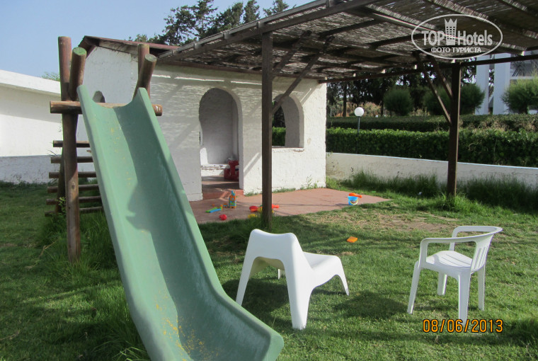 Сразу скажу в отеле Эден рок с детьми делать нечего: площадка ужасная с поломанной горкой, низкими качельками и непонятным домиком а-ля сортир. Наши дети обычно очень любят проводить время на площадке и в мини-клубе. Здесь мини-клуб существует только номинально: одна девочка ходит по территории собирает детей (1-2 ребенка) и потом они в домике рисуют. Вообще надо сказать, что анимация в отеле на очень низком уровне: 1 раз в неделю - греческий вечер - 4 танцора танцуют греческие танцы, в остальные вечера свои аниматоры устраивают самодеятельность. Причем каждую неделю программа повторяется. Мы были 2 недели и вечерами томились от скуки.