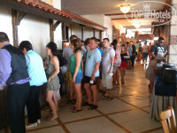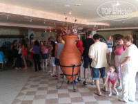 Расскажу свою историю: приехали в отель в 11-30 03.06.13, в номер нас заселили в 15-00, т.к. заселение только после 14-00 или если хочешь раньше заплати за троих 30 евро. Браслет на руку тоже повесили после заселения. Есть мы попали только на ужин (хорошо еда для ребенка была с собой). Номер нам дали 403 хороший, пока мы не пошли в ванну: там с потолка капает вода неизвестного происхождения, для того чтобы почистить зубы или сходить в туалет, надо найти определенное положение, чтобы не чего на тебя не капало. Когда мы ложились спать обнаружили, что нет постельного белья для ребенка и третьего комплекта полотенец. В эту ночь папа спал без пододеяльника. Утром сообщили об этом на ресепшн и попросили все исправить. Сами пошли завтракать в 8-00 (завтрак заканчивается в 10-00), чтобы взять ребенку блин пришлось оттаять очередь 40 мин, за один раз жарят 9 блинов, а очередь семей 25. На обед мы пошли в 12-30, там я сразу пошел стоять очередь за мясом гриль отстоял около часа. Жена с ребенком уже поели и ждали меня, потом пошли на тихий час, пришли в номер там ничего не изменилось. Пошел на ресепшен опять попросил, чтобы все исправили. Сказали хорошо. На ужин повторилось все что было в обед и завтрак. После ужина пошли укладывать ребенка спать,а в номере белья так и нет. Пошел опять на ресепшен и так несколько раз, пока не вспомнил русский лексикон! сразу все принесли даже до номера дойти не успел(супер). Но течь с потолка убрать не могли (мы в ванну старались не заходить без нужды), потом решили поменять номер . Он нам понравился 170-й, но когда стало жарко, обнаружили, что не работает кондей и подтекал душ, но его починили на след. утро. С едой все так и продолжалось на четвертый день мы пошли на завтрак в 9-15 и офигели за блинами очередь еще больше, а на раздаче нет ничего. Народ бесится . я это все сфоткал и пошел на ресепшен. Там сначала типа не понимают, прошу позвать старшего - все показал. Девушка молча позвонила в столовую и у нас появилась еда (ура)))) . За блинами на завтрак и мясом гриль на обед и ужин я больше не стоял, С чаем тоже, извините, жопа. На всю столовую 3 аппарата с гор водой и кофе, но то воды нет, то кофе-какао закончилось, а если вам повезло, и вода есть, то нет пакетиков черного чая например. Аппараты работают только на завтрак. Далее решили записаться в рестораны а-ля карт: запись с 9-00 до 11. Пришел в 9. Было человек 20, ну думаю запишусь. Ан нет, человек 10 записали остальных нет. Девушка, которая записывает ничего не говорит, все стоят и другие подходят, занимают, ждут. Оказывается места закончились, при этом болгар без очереди записывают (в столовке они также на особом счету) Народ стал возмущаться и услышал от этой девушки, что болгары русских не любят. Что здесь началось это капец, она смылась, народ бунтует. пришла девушка, которая помогала с едой, записала всех кто остался в один ресторан (их 3). На следующий день сходили в ресторан (оборжались все от блюда крабруле). В общем через некоторое время мы ко всему приспособились как-то, чтоб не портить себе настроение. Еды мало, фрукты, мясо и круасаны в драку практически (фрукты и воду ходили покупали не дорого). Номер приходили убирать, когда ребенок спал днем, поэтому не убирали практически.