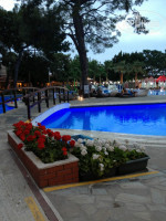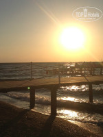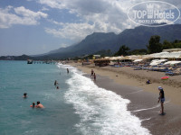 Пляж мелкая галька, взяла ребенку специальную обувь, боялась не удобно будет бегать, но нет, маленькие камушки -это даже полезно, а детки все время в них копаются, кто бросает, кто что-то строит, кто выбирает красивые), море чистое, рыбок каждый день ходили кормить на пирс, шезлонгов много, но если хочется в определенном месте загорать, лучше утром занять место, есть большой бассейн, глубина разная - для совсем малышей, деток побольше и взрослый (90 см и 125), горка тоже есть, но для деток побольше и для взрослых.