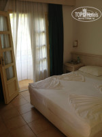 Вот многие в своих отзывах об этом отеле писали про старые номера, маленькие, холодные, с какой-то живностью ) не буду утверждать, что таких в отеле нет, он большой и номера наверняка все разные, но у нас претензий к номеру не было вообще, достаточно просторная комната, большая двуспальная кровать, кондиционер, балкон, в ванную дверь отдельная, там душ и туалет, номер светлый, очень даже симпатичный, пол действительно -плитка, но мне показалось не холодный, поскольку довольно жарко и даже приятно походить по прохладному полу, у нас был 3-й этаж, может еще по этому. Все приборы работали и фен и телевизор и кондиционер. Единственное, что не очень удобно, ключ один и когда его вынимаешь и уходишь, ни кондей, ни розетки не работают, оставить заряжаться телефон например уже нельзя. Балкон возможно и не большой, но там стояла два стульчика и столик и было место куда поставить круги, а мне больше и не нужно было, зато выходишь и вокруг везде сосны, запах потрясающий, птички поют, на заднем плане горы видно и только слышно как шишки трескаются).