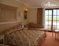 Приехали в 10.30. Заселились на удивление быстро без каких-то дополнительных усилий с нашей стороны: в 11.30 багаж уже был в номере. Поселили нас в новом корпусе с видом на горы. Есть еще номера с видом на сад (у них побольше и поприятнее балкончики). На нашем балконе стоял лишь ободранный пластиковый стул (у соседей были нормальные стульчики). Мебель, сантехника, кондишн, фен в нормальном рабочем состоянии. Единственный неприятный момент - кушетка заляпана подозрительными пятнами.
