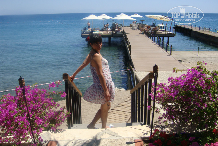 Всем привет! Отдыхали с подругой с 25.05.2013 по 01.06.2013, остались довольны на все 100%. Конечно же были незначительные минусы, но нам это не помешало. Ну начнем по порядку. По приезду заселились мы со второго раза, сначала дали номер без балкончика, расположенный в каком-то закуточке, но потом заселили в нормальный номер с балкончиком, но чуть подальше (номер 933) и без всяких денег. Территория отеля очень красивая, деревья, кустарники, цветочки, даже уточки гуляют. Номера чистые, уютные, помимо кроватей есть еще и диванчик. На территории 2 бассейна, один как бы двухэтажный расположен у бара, а второй чуть подальше с горками. Пляж небольшой, разделен на 2 части. Также можно загорать на пирсе, без всякого песка и каменистого входа в море. Бар на море платный, поэтому приходилось за напитками ходить к бассейну. После обеда все мероприятия проходили на пляже (разные виды аэробики, волейбол, стрельба из лука, аэробика в море). Нас это очень устраивало, так как мы все время находились на море. Все девчонки и мальчишки аниматоры веселые, общительные, доброжелательные, в общем классные.