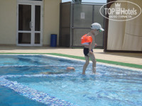 Отель очень современный, чистый. Есть бассейн с 2-мя отделениями для детей. Небольшая детская площадка у бассейна. Питание замечательное. Уборка в номерах ежедневная. До моря - минут 10-15 через торговые палатки. Не очень понравилось то, что в море много водорослей, да и народу - очень много . Лучше приходить пораньше, чтобы лечь поближе к воде.