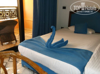 Выбирали Топаз, но в нескольких турагентствах которых мы были, нас отговариваливали, ссылаясь на то, что море далековато от сапфира и топаза. Это оказалось правдой, мы приняли правильное решение что выбрали имеено Парадиз. Заселение было примерно после 4 часов по местному времени, заняло около пяти минут. Заселили не в главный "квартирный" корпус, а в "бунгало" двухэтажные каттеджи, на каждом этаже около 5-7 номеров. Второй этаж, вид на сад, как и обещал туроператор. Балкон, исправный кондер (дует достаточно сильно, переодически выключали, подмерзали.), телевизор с арабскими каналами, несколько русских и украинских, холодильник с набором питьевой воды. Душ, подобие доисторического фена (рабочий, сушит), набор чистых (белых) полотенец. Душевой набор отвратный, имею ввиду мыльце, типа геля для душа и шампуня, шапочка для душа, все в старой упаковке, видимо лежит уже давно и никто не пользуется. Это не испортило впечатление, так как все равно привезли с собой все нужное.