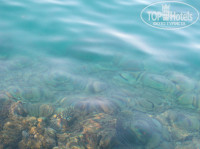 Море чистейшее (бассейны и море открыты только до 18-00). Песок притяный, вода прозрачная, рыбок много. Есть несколько скопление мертвых кораллов (но с рыбками) на пирсе обильно плавают рыбки хирурги, попугаи, видели ската. множество маленьких цветных рыбок.