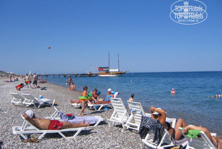 Отдыхали в этом отеле в июне. Номера хорошие, уборка каждый день, отличный вид из окна, русский канал работал очень плохо. Советую, когда в номере отдыхаете, закрываться на защелку, ценности и мобильники держите в сейфе (он платный), т.к. воруют. При нас обворовали 6 номеров ночью и утром, когда люди спали или завтракали. Сервис средний. Несколько раз застряли в лифте, ни кому нет дела, только хихикают. Питание могло быть лучше, очереди как в столовке, выбор блюд отсутствует, мясо раз в неделю, фрукты - дыня и все, чай кофе – помои, традиционной турецкой выпечки и вовсе нет. До моря 5-7 мин. ходьбы. Утром, часов в 9, приходили, лежаков хватало. Пляж песок, вход – галька., общий с другим отелем. Море отменное. Жара стояла под 50. Погулять не где, Кириш маленький. Развлекательная программа раз в неделю, дискотек нет и вовсе. Экскурсии брали в Кемере, из принципа, т.к. представитель принимающей фирмы работать с туристами не может. До Кемера на автобусе ездили. Мы, конечно были готовы к такому эффекту, по этому не расстроились, за ту цену, что мы заплатили (тур был горящий), нас вполне устроило. А вот люди, кто отдал приличные день, я думаю были расстроены.