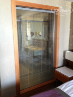 3) Номера современные с хорошей отделкой, но вот ковровые покрытия "воняли". Причем в одном номере больше чем в другом. Ещё обратил внимание, что в санузлах нет вентиляции. Я вот не понимаю, как можно строить отель с отсутствием элементарной вентиляции в туалетах. Приходилось проветривать номера по вечерам открыв дверь и балкон, благо расположение номеров на последнем этаже это позволяло и был прохладны ветерок по вечерам. Кондиционеры (сплит системы) в номерах индивидуальные, работали достаточно хорошо. Супруге в номере очень понравилась стеклянная перегородка (с жалюзями) между душевой и комнатой. Экстравагантно выглядит. -)
