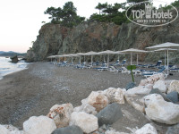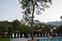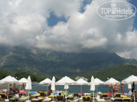 Теперь о самом отеле - территория достаточно большая, много зелени и потрясающий вид на горы. Три пляжа, но самый удобный с песочком и очень приятным входом находится в самой дальней части территории отеля Phaselis. Там мало зонтиков и лежаков и чтобы занять лежак и место под зонтиком -приходилось вставать в 6 утра и идти занимать. Пляж, самый ближний к бассейнам имеет каменистое дно и неудобный вход в море. В него реально только с плавучего пирса входить и выходить. И третий пляж, как у них на табличке указано "Silent beach" - но там всё также шумно и кричат дети.