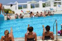 Анимация в отеле: Дневная была просто потрясающая,никогму не оставалось скучать(я в море не успевала купаться)С,сначала утренняя растяжка,потом дартс,волейбол,бочча,аквааэробика,перерыыв,водное поло,снова волейбол и фитнес.Вечером была мини диско,а потом для взрослых(в прямом смысле!),иногда вечером тоже было хорошо,например фаер шоу,в котором учавствовал сам аниматор,танцы по всему миру(так же танцевали аниматоры),конкурсы на миссис и мисстер отеля,караоке и даже бинго!одна девочка выиграла 35 евро,шампанское и футболку!если вы любитель танцев то вам стоит сходить на кабарет,была такжде музыкальная викторина,но на камеди шоу детей не ведите.