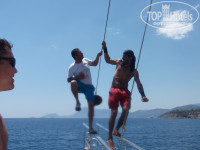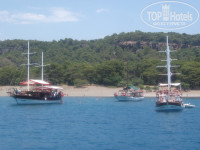 До моря идти не спеша 5 минут. Море изумительное!!! Прозрачное, бирюзового цвета, но от берега 3-4 метра и сразу очень глубоко. Поэтому с детьми не рекомендую. Присматривать за ними с берега не получится! На пляже предлагают катание на банане, скутере, парашюте. В соседнем отеле можно попросить байдарку. Вид на пляже портят ведра для мусора, которые стоят под каждым зонтиком, как будто в них когда-то хранили уголь. Неужели в отеле 4* нельзя найти что-то более эстетичного вида?