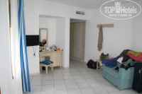 Отдыхали семьёй с двумя детьми 11 лет. В целом все понравилось!!! Приехали мы в отель в 11 часов, заселение, как положено в 14, мы пошли гулять по отелю, пообедали, к двум часам подошли на ресепшен. Я заранее попросила, чтоб номер был подальше от амфитеатра. Нам предложили номер 223 на Голубой улице (это оказался сьют двухкомнатный, номер хороший, но мы бронировали Family), заверили, что слышно не будет, но ночью было очень слышно дискотеку, и на утро я подошла попросила другой номер. Предложили другой, но тоже не очень далеко или сказали ждите два дня и освободиться номер Family 615 на Зеленой улице (она далеко от амфитеатра). Мы подождали и с радостью туда переехали. В номере было две комнаты (одна большая с большой кроватью, телевизором, столик с зеркалом, встроенный шкаф, балкон (мы жили на втором этаже), другая комната маленькая, там стояла двухярусная просторная кровать, тоже встроенный шкафчик), два санузла. Кондиционера там не было, было что-то типа вытяжки, но мы практически ей не пользовались, т.к. ночью сильной жары и духоты не было. А окна расположены на противоположных сторонах и можно было делать сквозняк. Но номера Family там разные (у наших друзей большая комната такого же номера была намного меньше). Улочки узенькие, поэтому если кто идет и разговаривает, то всё в номере слышно (но нас это не напрягало).