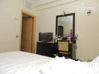 Мы жили в номере 2204 во втором корпусе. Окна выходили на ресепшн другого отеля и крыши других отелей, а также горы. Примечательно то, что солнце в номер не светило вообще, после обеда наискосок на балкон. Запахов от кухни мы тоже не наблюдали. Было очень тихо, что с ребенком 3-х лет не мало важно. У нас в стандартном номере была двуспальная кровать и двуярусная кровать, шкаф, тумбочки около кровати, столик около балкона, стол с зеркалом и холодильником под ним, кроме того, на нем стоял телевизор. Душевая была совмещена с туалетом. На балконе стол и два стула из ротанги. Кондиционер работал слабо. Но это, насколько я поняла, в Греции повсеместно из-за экономии.