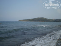 На пляж действительно надо пройти вдоль дороги, но это не "напрягало", на пляже людей мало, все в основном возле бассейна. Вход в море - есть крупные камни, мы заходили с правой стороны пляжа отеля Санта Мария(напротив синей телефонной будки) - там расчищен вход.