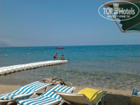 Приехали мы 3 июля 2013 года в 10-00 утра, сказали нужно ждать два часа, пока уберут бунгало для нашего заселения, по результату: бунгало было уже давно готово, но мы наверное "для галочки" сидели и ждали, когда нас в него пустят. Вот что представляет из себя бунгало: внутри все из доски (пол, потолок, стены), воняет канализацией (мы проветривали по несколько раз, а когда уходили, то включали кондиционер), по стенам ползают муравьи (честно!), босиком можно ходить только в первом помещении, где стоят кровати, во втором - где находится унитаз, умывальник и дождик, вкрученный в стену- только в сланцах, иначе можно подцепить грибок, душа отдельного нет, выпросто стоите на полу (как в общественной бане)и моетесь, вода стекает в дырку в полу (а рядом стоит унитаз,), вода подается периодами (то есть вы можете намылиться, а потом резко исчезнет горячая и вам придется все с себя смывать холодной), санузел отделен от комнатки шторкой, то бишь все запахи, если кто-то пошел в туалет (ребята, это чистая правда!), по всему бунгало воняет... не говоря уже о звуках... :-) Есть в комнатке два окошка, одно открывается, второе нет, на окошках висят хлопчатобумажный кусок ткани. Есть маленький телефизор с русскоязычным каналом. Уборка бунгало - 1 раз в день, каждый день.Есть 4 полотенца- два больших и два маленьких. Постельное белье чистое. Теперь о питании. Еды много, но она однообразная. Мы были 10 дней, и каждое утро ели омлет, яйца. сваренные вкрутую, из фрутков были только арбузы, и лишь один раз - яблоки. Из мясного- курица, по четвергам на ужин рыба, супы турецкие каждый день, огурцы, помидоры, фасоль каждый день. Из напитков- чай, кофе (из автомата), вино, джин, пиво, фанта, кола, спрайт- бесплатно (спиртное не собственного производства- платно). Анимаций нет. Есть один бассейн для взрослых и один для детей. После 21-00 вход запрещен- хлорируют. Дискотеки нет. По вечерам с 21-00 включают музыку на танцполе никого нет, т к никто не танцует под то, что крутят. Часто танцуют сами турки- обслуживающий персонал, и крутят то, что нравится не туристам, а им самим. На территории есть гамак. Также бегают куры, коты, есть одна собака (она на привязи). Коты ходят по рецепшэну, в помещении, где кушают, возле бассейна. Очень много на территории ящериц, правда они маленькие, дети с ними играют. В плане медпомощи- ничего, кроме термометра у них нет. Море около 150-200 метров от отеля. Вода хорошая, прозрачная, но пляж не благоустроен! Две горы камней лежат прямо перед вами, потом идет обрыв, вы с него спускаетесь, далее идет галька и непосредственный вход в море.Зонтиков мало, всем не хватает. По пляжу прогуляться нельзя, т к он по береговой линии около 70 метров, а дальше вас не пускают, т к начинается территория другого отеля. Рядом идет стройка, поэтому звук пилы по металлу будет немного будоражить. На пляже турки заигрывают с детьми туристов, при этом дети не хотят, чтобы их трогали, а они сами пытаются то погладить ребенка, то коляску взять и прочее. А теперь личное мнение: я с мужем была в Турции впервые, на роскошь не рассчитывали, но тем не менее, благоустроить пляж можно было бы, в бунгало поставить дверь в туалете можно было бы, сделать нормальный душ... Десерты были отвратительные, есть их было невозможно, фрукты отсутствовали, так что ели оди арбузы :-( Отдых нам понравился тем, что сыты были всегда, с юмором подошли к тому ж