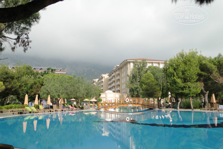 Начну пожалуй с размещения: Приехали мы в отель ночью, около 3...естественно заселить нас сразу не смогли, все номера были заняты (разгар сезона). Зарегистрировали нас зразу, багаж забрали в камеру хранения и попросили подождать до 12. Для нас это не было проблематично, так как в холле много всяких мягких диванов, на которых можно расположиться и поспать! Да и в ресторане есть ночной снэк...можно выпить чай, кофе и перекусить! Утром пошли позавтракали и сразу на пляж, чтоб время зря не терять. В 12 подошли на рецепцию, наш номер уже был готов! У нас был 2133: это номер на первом этаже, достаточно просторный, в ванной есть и душевая, и ванна, вида с балкона особо не было (слева немного видна гора, а перед носом сосны), но нам показалось уютно! Мини бар пополняют ежедневно (2 баночки пива, спрайт, кола, фанта, вода и 2 сока (не юпи), также кладут разные пакетики чая, кофе и сухие сливки. Убирают каждый день, полотенца меняют тоже.