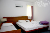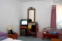 В номере одна комната, душ/туалет и маленькая прихожая-шкаф. Есть телевизор, стол, две тумбочки, бар-холодильник.