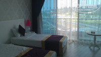 У нас был достаточно большой двухместный номер с двумя кроватями. В номере чисто, всегда убирались, каждый день приносили напитки в мини-бар. В номере ничего не барахлило, канализацией не пахло, да и "вечерней вони" как-то особенно не наблюдалось. Мини-бар и сейф бесплатные. Сейф в номере это очень удобно. По телевизору нашли несколько русских каналов. Окна выходили на дорогу и если был открыт балкон, то было немного шумно. Если же балкон был закрыт, то в номере было тихо. Кондиционер работал нормально, все легко регулируется. Душ не тёк, вода сразу же уходила в сливное отверстие, двери из душевых не выпадали. Единственное, шаталась перекладина на которую вешались полотенца - не смертельно. Перебоев с электрическом не было, а если и были - мы об этом не знали. В душе были ванные принадлежности: шампунь, кондиционер для волос, ватные палочки, шапочки для душа - мы вдвоем не все успели использовать за 5 дней (2 дня нас в отеле не было). Душ просторный. Есть где развернуться и будет удобно людям любой комплекции. На балконе можно было посидеть, отдохнуть: есть 2 стула и столик.