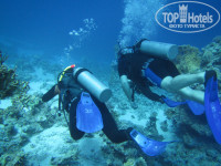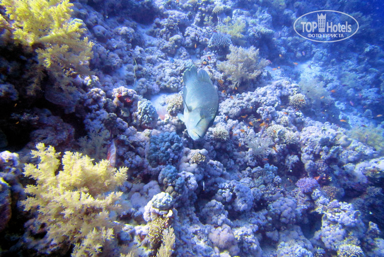 При отеле отличный и крупный дайвинг центр. Под понтоном живет любопытный и дружелюбный Наполеон. Правее понтона обитают мурена и осьминог, крылатки. Ночью встречаются красные испанские танцоры. Встретили молодую китовую акулу, но это чистая случайность. Добавленные фото - риф под понтоном.