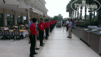 Отдыхали в июле, 2013 с маленьким масиком (2 года). Ездили от Интуриста. В целом впечатления положительные, но второй раз точно не поедем. Отель находится в поселке Текирова что в 20 км от Кемера. Автобус со всеми заездами вез нас ровно 2 часа 10 минут как туда так и обратно. Место очень красивое, великолепный вид на гору Тахталы, но территории у отеля практически нет, да и лысоват кажется. Понравилась еда, ее много и вкусная, особенно ужин понравился. Кстати там каждый четверг проходит Турецкая ночь, где повора готовят особенные блюда и официанты одеваются в праздничную форму. По окончании проходит ярмарка до глубокой ночи параллельно с дискотекой. Обслуживание тоже достойное, достаточно быстро. Контингент только из СНГ 100% из них процентов 70 русских, много с Украины и Казахстана. По словам местного аборигена, за 8 лет ни разу не было ни одного немца, француза или англичанина. Весь персонал говорит/либо пытается говорить по русски и другими языками не владеют. Не понравился алкоголь, во первых местное вино жуткая кислятина, текила никакая, коктейли тоже быстро надоели. Так что советую закупаться основательно в Дьюти фри. Не понравилось, что алкоголь подают только рядом с бассейном, а на море местный снэк бар только пиво предлагает и то в обеденное время. Море! Море до обеда чистое, а после появляется всякая гадость, один раз даже невозможно было зайти. Пляж большой, сначала песчаный, потом мелкая галька с песком, ближе к воде уже галька. т.е. кому как нравится. Шезлонгов много и драк за них нет, навесы тоже достойные. Сидит охранник и не пускает из соседнего отеля, т.к. у них похуже условия. Номера хорошие, удобные кондиционер работет хорошо, звукоизоляция тоже гуд. В целом рекомендуем этот отель для отдыха с детьми. Кстати, цены на этот отель сильно прыгают, так что следите за ними перед тем как покупать.