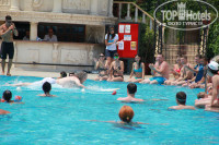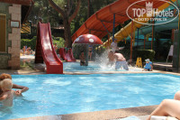В свою очередь хотелось бы подчеркнуть, что администрация отеля в первую очередь заботится о безопасности всех отдыхающих. В частности возле бассейнов стоят стенды с правилами поведения и соблюдения техники безопасности возле бассейнов, а также правила пользования водными горками. Все правила, которые необходимо соблюдать, написаны на 3 языках, инструкции в картинках отображают их более наглядно. Помимо этого возле бассейна с горками имеются резиновые дорожки, а также, где необходимо, стоят жёлтые предупреждающие указатели "Caution. Wet Floor!". Хотелось бы особенно подчеркнуть, что возле бассейнов запрещено бегать и прыгать, а ответственность за своих детей несут родители.