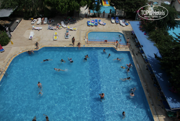 Понравилось : отель небольшой , находится в маленьком городке , по которому приятно прогуляться вечером. На территории есть три бассеина : большой , детский (глубина- взрослому по колено) и еще один с горками. По горками есть деткая комната , где дети рисуют и играют . Есть небольшая треножерная площадка .
