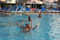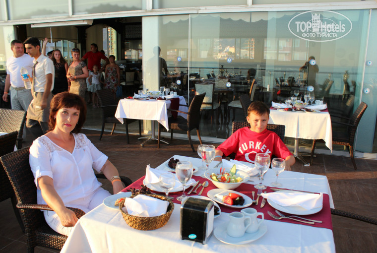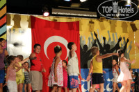 Вернулись с отдыха неделю назад под впечатлением. В Турции были первый раз.Перед тем как ехать ,долго выбирали отель,но не ошиблись с выбором.Никаких задержек с самолетом слава богу небыло,знали ,что до отеля ехать 3-3,5 часа,были к этому настроены.В списке наш отель был последним,но время пролетело незаметно.Наш гид много рассказывала о стране,о достопримечательностях,что время пролетело.Приехали до обеда,вещи оставили в камере хранения, вежливо предложили нам пойти на обед.После обеда ,подождав где-то 30-40 мин.нас разместили в номер 1533 на 5 этаже с выходом на море и бассейн.Красота неописуемая,музыка,шум нас не раздражал.Отдохнув после дороги и сытного обеда,мы пошли изучать территорию отеля.Атмосфера доброжелательная,куда бы мы не ходили всегда весь персонал отеля нам улыбался,спрашивал-как дела?Мой сынок ждал мини-диско каждый день,смотрел на часы и боялся опоздать.И то,что в отзывах ранее писали,что плохо и танцы повторялись,я могу поспорить.Сыну скоро будет 12 лет и он с удовольствием отплясывал,потому что мы приехали с отличным настроением,не искать минусы,мы этого отпуска ждали и готовились к нему долго.Мы посещали все после мини-клуба развлечения и от души смеялись над конкурсами.А что вытворяют аниматоры УФУК,Чарли-это супер!!!Вам привет из России и воздушный поцелуй!(Анастасия будьте добры передайте им).А турецкую ночь запомним надолго.Для нас были показаны национальные танцы-восхитительно,на видио сняли.Смотрели ,как проходит турецкая свадьба и представляете нас с мужем поженили,мы прошли весь ритуал.Это незабываемо-вот мы попали,у меня до сих пор на левой руке от краски пятно не смывается.Детский аниматор Анастасия-умничка,сынок скучает по ней-привет ей огромный.Питание разнообразное,за неделю которую мы были,все не успели попробовать .Мы люди непривередливые, приехали не жрать,пить нам все понравилось. Можно из предложенных блюд все равно что-то выбрать.У нас сын плохо кушает мясо,так в Турции он с удовольствием ел, мы удивились.Море конечно штормило,но мы или с пирса или находили место,как-то приспосабливались купались,короче "боролись "с волнами.Бассейны супер не охото даже выходить с них.Читала отзыв по поводу лежаков и могу подтвердить,что туристы с 7 утра бросят полотенца на целый день и лежаки заняты.Мы это поняли на третьи сутки,стали наблюдать и действительно,практически им не пользуются,а полотенца лежат.Анастасия,я понимаю,это невозможно отследить такой поток людей,но что будет если каждый человек так будет делать?В отеле 307 номеров (если я не ошибаюсь ) и если каждый турист будет в 7 утра занимать и не пользоваться лежаком,что будет?Я не в претензиях,но пообщавшись с народом,многие были недовольны.Мы семьей еле находили один и были этому довольны.Ладно все этого мелочи.Брали экскурсию Мини-Алания Сити-в целом остались довольны.Единственное много времени ушло на шопинг,который нам не был нужен.Приходилось ждать отдельных лиц долго,половина времени ушло на магазины.Были в ресторане Аля-карт,понравился очень себас,в целом все хорошо.В столовой весь персонал доброжелательный,молодцы,работают,как пчелки.Анастасия,к вам большая просьба, передайте привет Мустафе(который на фото)официанту и молодому официанту он тоже есть на фото (я их вместе с отзывом скину) к сожалению не знаю его имени-огромный привет.Они были