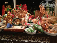 5. Питание в отеле достаточно хорошее для Египта. В меню всегда присутствовало мясо, курица, рыба, морепродукты, свежие овощи и фрукты (арбузы, дыни, яблоки, бананы, виноград, финики, апельсины), разнообразные гарниры и конечно же десерты. Голодным ни кто не оставался. Очередей особо не встречалось, т.к. на территории отеля большое количество ресторанов (и все они тематические: итальянский, индийский, китайский) кушайте там, где душе угодно!