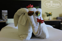 2.Номер оказался достаточно большим и хорошим,все работало без всяких нареканий.Уборка производилась каждый день, постельное белье и полотенца всегда были свежими.Спасибо нашим уборщикам Исламу и Мухаммеду за тот порядок, который они наводили (раскладывали наши вещи, обувь, баночки, бутылочки))). Постоянно делали различные фигурки, расставляли живые цветы, а в день когда мы уезжали засыпали наши кровати воздушными шарами!
