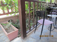 7. Территория вокруг бассейна - плитка - не убирается, не подметается, в пятнах (едят, в основном, на улице), сухие листья, окурки... Заявленный сад - убог, сух, не ухожен, территория его ничтожна для этого названия.