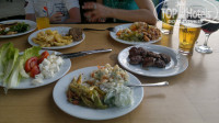 Питание приемлемое, т.е. существует некий набор обязательных ингредиентов (баклажаны,кабачки, брынза, фасоль и пр.), которые комбинируются с различными соусами и на выходе вы получаете условное разнообразие из 7-8 якобы разных блюд. Макароны и картошка тоже всегда были вдоволь. Курица, индейка тушеные с овощами (см.выше). А бывал и гриль, но мы его не брали, потому, что на запах жарящихся фрикаделек или скумбрии сразу выстраивалась очередь из 20-25 человек и она не исчезала, пока не закончится мясо или рыба. Я видел радость на счастливых лицах людей, несущих в своей тарелке вожделенные 3 шт. котлетки, диаметром 3 сантиметра... Но речь не о людях - сервис такой.