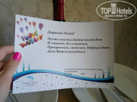 свой день рождения отмечала в отеле, никто ни о чем не договаривался, и тем не менее заходим в номер, а там оооп-и поздравление с открыткой, вином и фруктами от рецепшена)