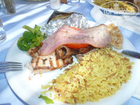 Советую посетить таверну на пляже. Бесплатно один обед и ужин. В обед было действительно вкусное разных видов мясо,приготовленное на гриле. Кстати, гид Вероника сказала, что все напитки там платные. Это неправда. По стакану нормального сока, графин вина и вся газировка бесплатно. Уточните у официанта.