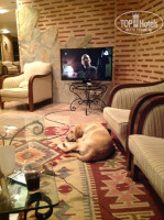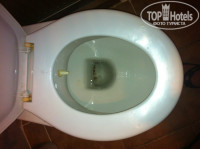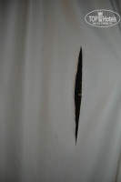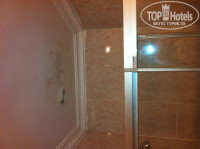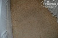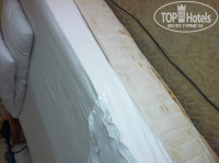В ванне плесень, унитаз наверно вообще никогда не моют (прошу прощения за подробности). В комнате замызганный ковролин, разодранная кровать, мини-холодильник с большим куском льда, занавеска с дырой, огромная щель между окном с балконом и стеной (весь звук с улице был у нас в номере). Постельное бельё с желтыми разводами и пятнами