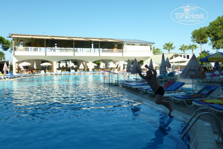 Внешний вид отеля очень порадовал. Весь персонал очень вежлив и дружелюбен, все улыбаются, несмотря на то что приходится работать с утра до ночи, и в такую жару, с кислыми минами на лице ( как зачастую видишь это у нас) никого ниразу не видела. Отель выбирался для отдыха с ребенком, поэтому три бассейна моего сына привели в полный восторг. Многие пишут, что зачем бассейны если ехали на море.... Но не соглашусь с этим. если едешь на отдых с детьми. Море очень соленое и неспокойное, с берега не поплаваешь и не поныряешь. Мы купалсиь с пирса в нарукавниках, т.к. я плавец еще тот))). Поэтому первую половину дня мы проводили у бассейна, где ребенок и нырял и плавал спокойно, к тому же там всегда весело как с 10-00 приходят аниматоры. В бассейне с горками я с таким же удовольствием как и ребенок каталсь с них, было весело. И крытый бассейн с прохладной водой тоже пришелся к стати, т.к. очень было приятно в жару окунуться в прохладную водичку, и в нем почти всегда никого не было. Территория отеля хоть и маленькая, но очень все удобно расположено. Дорога от бассейна до пляжа занимала ровно 2 минуты.