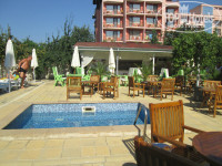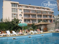 Хочу оставить отзыв об отеле в котором мы жили в Болгарии в течении 8дней.Летели по горящей путевке от туроператора Туи из Донецка в Бургас.К отелю претензий нет.Хотя отель 3*,но очень чистый,уютный по -домашнему.Хороший приветливый персонал.Уборка в номере каждый день,полотенца меняли один раз.Докладывали мыло,туалетную бумагу.У нас был номер на троих.В номере холодильник,кондиционер,телевизор плазменный,небольшой набор посуды,шкаф с вешалками.На балконе стол и стулья.Все работало,ничего не ломалось,проблем с сантехникой не было.Показывал телевизор 4 российских канала.Посторонних запахов ни в номере ни в отеле не было.Очень зеленая и огражденная территория отеля.Много цветов,деревьев,кустов и травы.За растениями ухаживают.Кормили вкусно и много,хотя у нас были только завтраки.Фото завтрака прилагаю.Официанты вежливые,улыбчивые.Отношение к нам украинским туристам было превосходное.Фена в номере не было,мы пользовались своим,который захватили из дома.При отеле живет хозяин отеля,поэтому нареканий к отелю нет.Бассейн в отеле небольшой,но есть детский еще.Возле бассейна есть бар.Отель находится в центре курорта,до пляжа идти 5 минут.Остановки автобусов до Несебра и других курортов не далеко.Вокруг много магазинов,есть рынок,аптека,прачечная. Белье и полотенца были белоснежными,без пятен и дырок.Сейф есть на ресепшене,но мы не пользовались,Никто ничего не украл.Деньги и документы закрывали в чемодан на код.Есть лифт,хотя в отеле всего четыре этажа.Отель не большой,всего 50 номеров.Есть номера для курящих и не курящих.В ресторане отеля можно по-кушать за деньги,очень вкусно и приемлимые цены.В отеле отдыхает много немцем и англичан.Русских мало,в этом тоже есть преимущества.Если есть вопросы пишите,отвечу.уроператор нам тоже понравился.