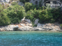 Вот только если вам нужен удобный вход в море, песчаное дно, то вам сюда не надо. Мы ныряли с понтона. Дно каменное, входить не удобно... А если волны, то вообще не айс. Но нам это было неважно. И поэтому понравилось абсолютно все! Кстати территория отлично охраняется, особенно ночью. Здесь чувствуешь себя очень защищенной.