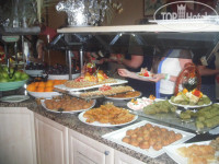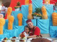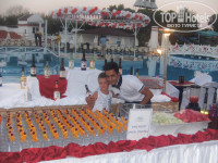 Что касается питания, то оно на высшем уровне!!!! Через день тематические ужины, красиво украшенные и сервированные столы. На улице полно еды с мангала. В помещение тоже глаза разбегаются. Все всегда свежее и красиво украшенное, а главное вкусное. На любого гурмана найдется своя кухня. О десертах вообще можно бесконечно говорить. Всего и не перепробуешь!!! Шеф повара молодцы!! Фрукты сезонные: дыни, арбузы апельсины, нектарины, персики, абрикосы, яблоки, виноград постоянно в наличии. За 12 дней отдыха мне ни разу ничего не приелось! Помимо основного ресторана питаться можно целый день в других заведениях. В рестораны а ля карт мы не ходили, просто не успели да и смысла особого я в этом не видела. Все можно найти и в основном ресторане. а по ресторанам тематическим я и дома сходить могу! Посетили караоке клуб. Звук отличный, не смотря на небольшое помещение, аппаратура тоже хорошая -это я как профессионал говорю. Караоке бар стоит 20 баксов с человека: тарелка фруктов и напитки включены.