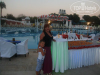 Территория отеля достаточно большая и ухоженная. Все очень красиво. Море наичестейшее, вход в море галька, но войти можно ноги не поломаете!!! Кого не устраивает входите с пирса. Душевые по всему пляжу и рядом с бассейнами, места всегда достаточно - и в тени под солнышком. Мы тусили у бассейнов там интереснее, анимация практически постоянно. Анимационная команда супер!!!! Ребята все просто классные, это касается и детской и взрослой анимации. Ваши детки будут в восторге от тети Вики и Кэт. с 10 до 22.00 они всегда рядом. Вечернее шоу отдельный разговор. Таких сильных представлений я не видела давно! Ребята своими силами и другими коллективами творят чудеса. Мы попали на байрам, который совпал с турецкой ночью в отеле - было просто волшебно!!! Вообщем анимация в отеле отличная - каждый найдет чем заняться: мы с мужем разрывались от спортивных состязаний. Все боролись кто больше грамот выиграет. А игры у бассейна в 12 и 16 часов - просто не возможно не принять в них участие. Самые классные аниматоры, которых полюбил мой сын это Байбай, Мусти, Джони(Джек Воробей).