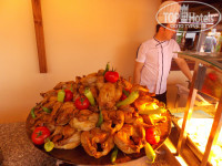 Общий стол – очень разнообразный, мясо тушеное, вареное, запеченное, а ягненок в овощах - это что-то волшебное!!! И конечно овощи, салаты, соления, и т.п. Секрет второй - на улице, на открытом воздухе готовят гриль!!! Рыба, курица, котлетки, картофель фри, овощи, и всякая всячина – это для больших мужчин, мой муж только там и питался))) Правда обнаружил он это только на третий день)))